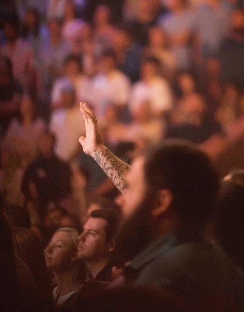This photo holds a very special place for me. One of the many things I love about worshiping at HC is that everyone is welcome. Regardless of your age, background, family of origin, skin color, if you are seeking Jesus you have a place here. This tattooed arm reaching to our Lord embodies that inclusiveness. Artistically, I also appreciate the composition with audience in the background, the focus on the arm, and yet the face remains hidden.